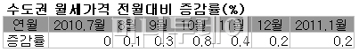 국토해양부는 이달 수도권 월세가격 동향조사를 실시한 결과 전월에 비해 0.2% 상승한 것으로 나타났다고 31일 밝혔다. 가을 이사철에 상승폭이 확대됐지만 9~10월 이후 안정세를 지속하고 있는 것으로 파악됐다고 설명했다.