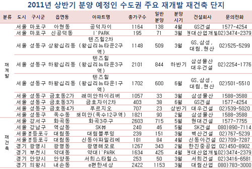 부동산 업계에 따르면 올 한해 수도권에서 선보일 예정인 재개발·재건축 물량은 1만2000여가구로 집계됐다. 특히 이들 물량의 상당수가 역세권 등 입지여건이 양호하고 대단지여서 수요자들의 관심을 끌 것으로 보인다.