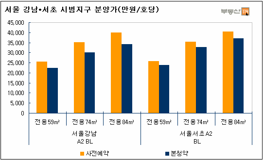 본청약 물량은 전체 1994가구 중 사전예약으로 확정된 1336가구를 제외한 강남 273가구, 서초 385가구다. 이후 본청약과정에서 사전예약 당첨자 중 미신청이 추가로 발생할 시 물량은 조정 될 수 있다. 분양가는 기준층 기준으로 강남은 3.3㎡당 924만∼995만원, 서초는 964만∼1056만원이다. 이는 사전예약 때 추정분양가 1030만∼1150만원과 비교하면 6~13%가량 낮은 수준이다. 확정된 본청약 분양가격은 사전예약 공급당시보다도 낮아 강남 보금자리주택의 가격경쟁력은 더욱 높아졌다. 높아진 가격경쟁률만큼 당첨경쟁은 더욱 치열할 것으로 예상된다. 경쟁률 및 당첨커트라인은 사전예약 결과보다 도 높아질 것으로 예상되는 가운데 수요자들에게 선호도가 높은 전용84㎡형은 위례신도시 수준까지 높아질 수 있다. 위례신도시 전용84㎡형은 지난 5월 사전예약 당시 당첨커트라인이 1990만원(서울기준)이었다.